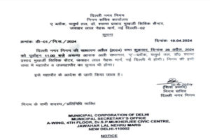 जारी की गई सूचना के मुताबिक चुनाव के लिए 26 अप्रैल को दिल्ली नगर निगम के सदन की बैठक बुलाई गई है। दिल्ली में फिलहाल मेयर और डिप्टी मेयर दोनों ही पद आम आदमी पार्टी के पास हैं। ऐसे में यह देखना महत्वपूर्ण होगा कि आगामी चुनाव में वह इन दोनों पदों पर अपनी जीत बरकरार रख पाती है या नहीं।