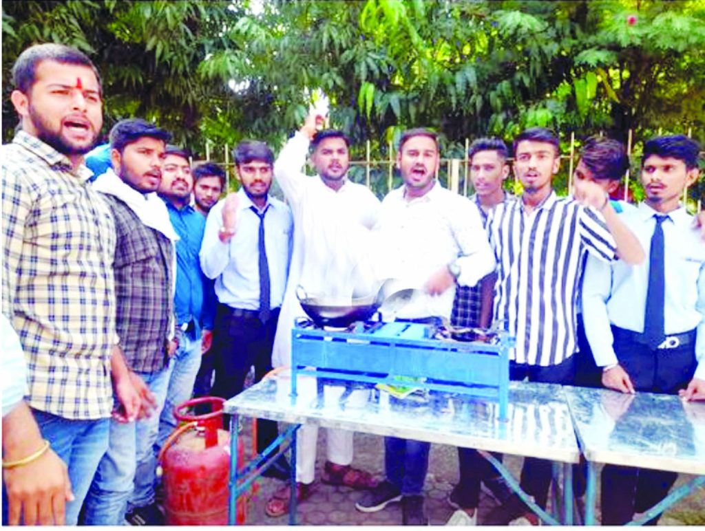 • कैंटीन खोलने की कर रहे मांग, कॉलेज गेट पर बनाए समोसे, 10-10 रुपए में बेचे
