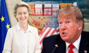 ट्रंप और यूरोपीय आयोग की अध्यक्ष उर्सुला वॉन डेर लेयेन के बीच बैठक के बाद अमेरिका ने यूरोपीय संघ के निर्यातों पर 15 प्रतिशत टैरिफ लगाया है. इसके अलावा संघ की ओर से ये वादा किया गया है कि वह अमेरिकी अर्थव्यवस्था में 600 अरब डॉलर का निवेश करने का फैसला लिया गया है. यूरोपीय संघ की ओर से ये भी वादा किया गया कि है कि वह अगले तीन साल में 750 अरब डॉलर मूल्य की अमेरिकी ऊर्जा भी खरीदेगा. खास बात ये है कि इन सबके एवज में अमेरिकी वस्तुओं पर कोई पारस्परिक टैरिफ नहीं लगाया गया है.