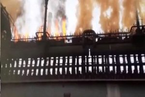 जमशेदपुर । टाटा स्टील (Tata Steel) के जमशेदपुर स्थित प्लांट (Jamshedpur plant) के अंदर धमाके (Explosion) के बाद लगी भयंकर आग (Fierce Fire) में तीन कर्मचारी (Three Workers) घायल हो गये (Injured) । लगभग दो घंटे बाद दमकल (Fire Brigade) की मदद (Help) से आग और गैस रिसाव पर (On Fire and Gas Leak) काबू पा लिया गया (Under Control) । प्लांट से ऊंची लपटें निकलने और गैस का रिसाव होने से आस-पास के इलाके में भगदड़ जैसी स्थिति बन गयी। आग लगने और गैस रिसाव होने के बाद कर्मचारियों को तत्काल सुरक्षित बाहर निकाला गया।