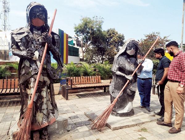 इंदौर। नगर निगम (Municipal council) द्वारा वेस्ट मटेरियल (waste material) से कई कलाकृतियां (Artworks) बनाए जाने का सिलसिला जारी है। अब यह प्रयोग पंचम की फैल (pancham kee phail) के बगीचे में किया जा रहा है। वहां वेस्ट से बेस्ट की कई सामग्री बनाकर प्रदर्शित की गई हैं। झाड़ू के तिनकों से परी और पुराने सामान से तोप से लेकर चेसबोर्ड, पुराने टायरों पर घड़ी आदि बनाए गए हैं।