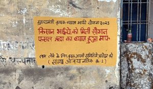यह भी सूचना है की शासकीय संपत्तियों तथा अन्य दीवारों पर नारे लिखे जाएं और ब्याज मुक्ति की घोषणा को सार्वजनिक किया जाए। सरकार की मंशा है कि नवंबर में चुनाव तक यह घोषणा दीवारों पर लिखी रहनी चाहिए ताकि किसानों को याद रहे। लेकिन मामला समितियों के सामने उलझ गया है। प्रत्येक समिति के पास 10 से लेकर 15 तक गांव हैं। एक गांव में यदि एक पेंटर 500 रुपए भी सब दीवारों पर लिखने को ले तो 8000 रुपए का बजट एक समिति के जिम्मे आएगा, लेकिन समितियों के पास ऐसा कोई मद नहीं है और ना कोई इतनी बड़ी राशि उपलब्ध है। अब पेंटर के पैसे बचाने के लिए हाथों से कर्मचारी दीवारों पर लिख रहे हैं। हांलांकि कुछ जगहों पर पेंटर भी काम पर लगाए गए हैं, लेकिन अधिकांश समितियां अपने स्तर पर दीवारें रंगने का प्रयास कर रही हैं।