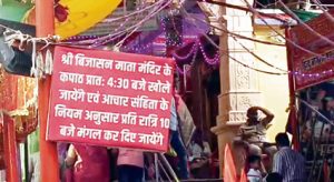नवरात्रि के पावन पर्व शहर के साथ ही आसपास के गांवों से भी माता के भक्त लाखों की संख्या में माता बिजासन मंदिर पर दर्शन करने आते हैं। वर्तमान में आगामी विधानसभा चुनावों की तारीख घोषित होने के बाद से लगी आदर्श आचार संहिता के चलते बिजासन माता के मंदिर पर प्रशासन द्वारा एक बोर्ड टांगा गया है, जिसमें मंदिर के पट खुले रहने का समय रात 10 बजे तक का दर्शाया है। इसको लेकर मैदान पकडऩे वाले कांग्रेस के नेता विवेक खंडेलवाल और गिरीश जोशी ने जिला निर्वाचन अधिकारी से मांग की है कि कई भक्त नंगे पैर माता के दर्शन हेतु आते हैं।