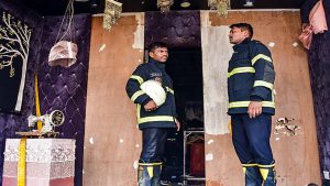 अधिकारियों ने बताया कि सुखशांति इमारत के भूतल पर स्थित शोरूम में सुबह करीब 6.38 बजे आग लगी। फायर ब्रिगेड ने इमारत की पहली मंजिल से आठ लोगों और चौथी मंजिल से पांच जानवरों को बचाया। एक नगर निगम अधिकारी ने बताया कि आग केवल तारों, बिजली के उपकरणों और शोरूम में रखे कपड़ों के स्टॉक तक सीमित थी। आग की वजह से शोरूम में धुआं भर गया। आठ दमकल गाड़ियां और अन्य ने मौके पर मोर्चा संभाला और बचाव कार्य चलाया।