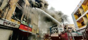 इन्दौर (Indore)। छोटी ग्वालटोली क्षेत्र (Chhoti Gwaltoli area) के कीबे कंपाउंड में कल देर रात एक बहुमंजिला इमारत में स्थित एशियन पेंट के गोडाउन में आग लग गई, जो चौथे माले तक जा पहुंची और रातभर ऑइल पेंट के डिब्बे धमाके के साथ फूटते रहे। आग बुझाने आई फायर ब्रिगेड की पांच-सात दमकलें रातभर मशक्कत करती रहीं और सात घंटे की मेहनत के बाद सुबह जाकर आग पर काबू पाया जा सका, लेकिन अब भी कई जगह चिंगारियां भडक़ रही हैं।