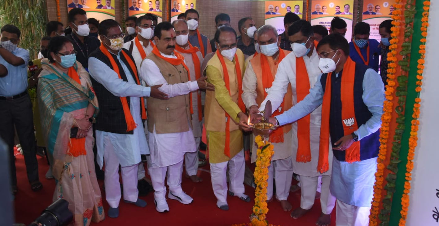भोपाल। भाजपा (BJP) कार्यकारिणी के गठन के बाद मध्यप्रदेश भाजपा कार्यसमिति (Madhya Pradesh BJP Working Committee) की आज पहली महत्वपूर्ण बैठक (Important Meeting) हो रही है। बैठक के पहले भाजपा कार्यालय (BJP Office) को दुल्हन की तरह सजाया गया है। बांस के तोरण द्वार बनाए गए हैं। साथ ही केले के पत्तों पर कार्य का विवरण लिखा गया है। 4 सत्रों में होने वाली इस बैठक के पहले चरण में पार्टी के राष्ट्रीय अध्यक्ष जेपी नड्डा (National President JP Nadda) दिल्ली से बैठक का शुभारंभ करेंगे। वहीं से पार्टी के वरिष्ठ नेता व महासचिव कैलाश विजयवर्गीय (General Secretary Kailash Vijayvargiya), 4 केन्द्रीय मंत्री फग्गनसिंह कुलस्ते (Union Minister Faggan Singh Kulaste), नरेन्द्रसिंह तोमर (Narendra Singh Tomar), प्रहलाद पटेल (Prahlad Patel), धर्मेन्द्र प्रधान (Dharmendra Pradhan) तथा सांसद ज्योतिरादित्य सिंधिया (MP Jyotiraditya Scindia) वर्चुअल मीटिंग (Virtual Meeting) को संबोधित करेंगे। वहीं मुख्यमंत्री शिवराजसिंह चौहान (Chief Minister Shivraj Singh Chouhan), अध्यक्ष वीडी शर्मा (President VD Sharma) सहित सभी मंत्री और विधायक भोपाल (Bhopal) में बैठक में शामिल होंगे।