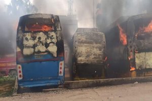 रांची । रांची के कांटाटोली स्थित खादगढ़ा बस स्टैंड में (At Khadgadha Bus Stand, Kantatoli, Ranchi) गुरुवार को आग लगने से (In Fire) पांच यात्री बसें जलकर खाक हो गईं (Five Passenger Buses Gutted) । इससे बस स्टैंड में भगदड़ और अफरा-तफरी जैसी स्थिति बन गई।