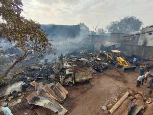इंदौर। लाबरिया भेरू क्षेत्र में कल देर रात पांच पीठों में आग लग गई। इस दौरान एक कालेज भी चपेट में आते-आते बचा। आग की लपटें इतनी तेज थीं कि कुछ दमकलकर्मी और चौकीदार भी झुलसने से बचे। चार लाख लीटर से ज्यादा पानी का उपयोग किया गया, वहीं निगम की जेसीबी ने दीवार तोडक़र मलबे को बाहर निकाला।