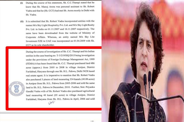 • प्रवर्तन निदेशालय द्वारा दायर आरोप पत्र में कांग्रेस महासचिव प्रियंका गांधी वाड्रा का नाम