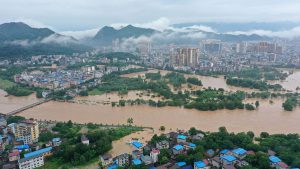शुई जियांग नदी में भारी उफान के कारण शहरी इलाकों में सड़कों ने नहरों का रूप ले लिया है। हवाई फुटेज में देखा जा सकता है कि कीचड़ के रंग के पानी में केवल ऊंची इमारतें और हरे-भरे पेड़ों की चोटी ही नजर आ रही है। कई इलाकों में जलस्तर इतना अधिक बढ़ गया है कि पानी इमारतों की पहली मंजिल तक पहुंच गया है और कारों की सिर्फ छतें ही दिखाई दे रही हैं।