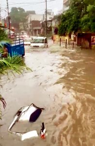 इन्दौर (Indore)। कल दोपहर बाद हुई तेज बारिश केचलते शहर के कई इलाकों में जलजमाव की स्थिति बनती रही और कई चौराहों से लेकर गली, मोहल्लों में पानी जमा होता रहा। सबसे ज्यादा खराब स्थिति मध्य क्षेत्र के इलाकों में रही। चंद्रभागा, कलालकुई, जूनी इन्दौर, नंदलालपुरा चौराहा, सब्जी मंडी और गौतमपुरा में सडक़ों पर इतना पानी जमा हो गया कि चंद्रभागा में तो बाढ़ जैसे हालात हो गए, भारी वर्षा के चलते 10 से 12 दोपहिया वाहन पानी में बहने लगे। रहवासियों ने दौडक़र जैसे-तैसे वाहन खींचकर बाहर निकाले।