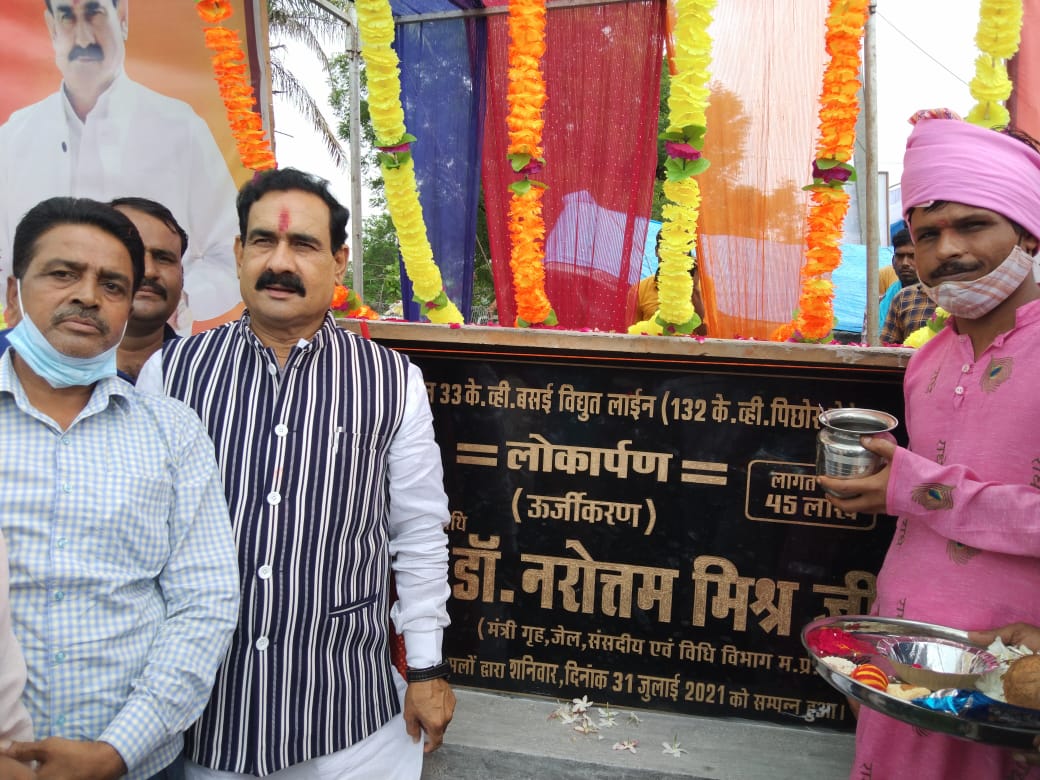 मंत्री डॉ. मिश्रा ने शनिवार को ग्राम नयाखेड़ा बसई में 45 लाख की लागत से निर्मित नवीन 33 केव्ही बसई विद्युत लाइन के ऊर्जाकरण कार्य का लोकार्पण किया। उन्होंने कहा कि बिजली के क्षेत्र में बसई वाले अब आत्म-निर्भर होंगे। गृह मंत्री ने कहा कि गाँव में नल चालू हो गये हैं। कुछ कार्य शेष को शीघ्र पूर्ण कर लिया जायेगा। उन्होंने कहा कि शीघ्र ही गाँव में हाईस्कूल बिल्डिंग का भी निर्माण कराया जायेगा। डॉ. मिश्रा ने कहा कि गाँव की भजन मंडलियों को वाद्य यंत्रों के लिए भी राशि उपलब्ध कराई जायेगी।