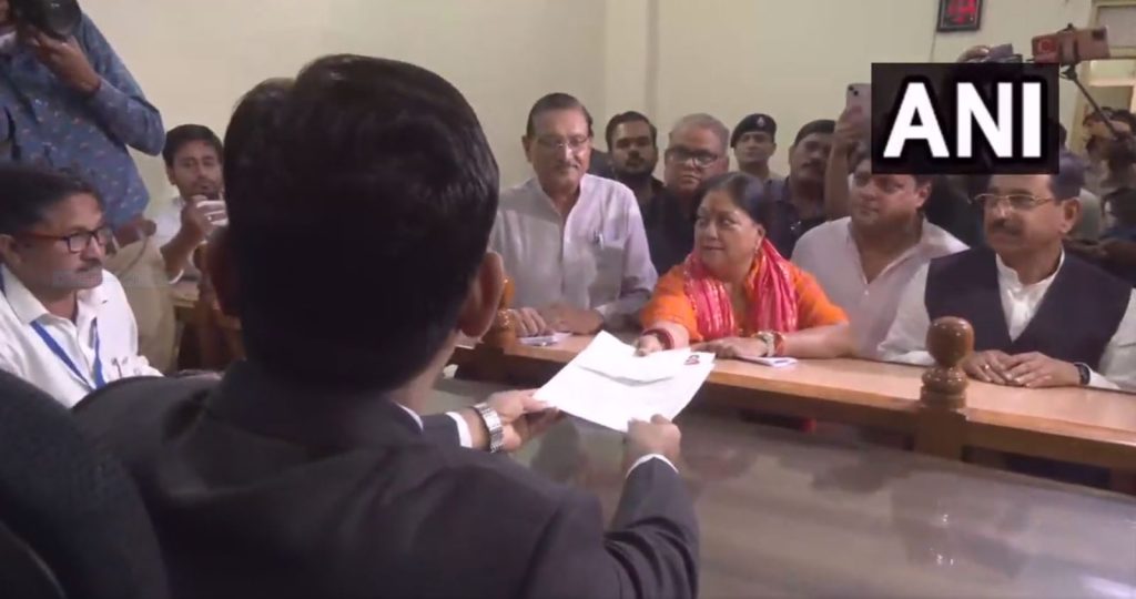 • झालरापाटन से अपना नामांकन दाखिल किया पूर्व मुख्यमंत्री वसुंधरा राजे ने