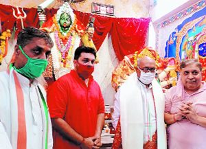 संत नगर। प्रदेश के पूर्व मुख्यमंत्री तथा राज्यसभा सांसद दिग्विजय सिंह ने मंगलवार को संत नगर में दुर्गा झांकियों के दर्शन किए। सीहोर नाका स्थित मां काली मंदिर में स्थापित मां जगदंबे दरबार की आरती में शामिल हुए। इसके बाद उन्होंने पुराना बी वार्ड स्थित मां दुर्गा की झांकी में आयोजित महा आरती ने भाग लिया। गिदवानी पार्क स्थित महादेव युवा समिति की झांकी में भी दिग्विजय सिंह पहुंचे यहां पर उन्होंने मां जगदंबे की प्रतिमा पर चुनरी चढ़ाई। और पूरे विश्व को कोरोना से मुक्ति मिले की आराधना भी की। मां काली मंदिर में दिग्विजय सिंह के साथ मंदिर प्रबंधन समिति के अध्यक्ष जगदीश रायचंदानी एवं वरिष्ठ कांग्रेस नेता त्रिलोक दीपानी पूर्व विधायक जितेंद्र डागा नानक चंदनानी पूर्व पार्षद अशोक मारण सहित अनेक कांग्रेसी कार्यकर्ता भी शामिल थे। संत नगर में चारों तरफ नवरात्र महोत्सव की धूम मची हुई है यहां पर अनेक झांकियों में धार्मिक प्रसंग प्रदर्शित किए गए हैं आरामशीन रोड पर किंग्स स्टार क्लब द्वारा चालीसवें वर्ष में झूले में सवार माँ दुर्गे की झांकी आकर्षण का केन्द्र बनी हुई है। संस्थापक महेश खटवानी ने बताया कि हम प्रत्येक वर्ष आकर्षक प्रतिमा की स्थापना करते हैं और इस वर्ष कोरोना महामारी को खत्म करने हेतु विशेष प्रार्थना अर्थात पल्लव करते हैं। झांकी के अध्यक्ष प्रकाश सभनानी,प्रकाश थदानी, नेवन्द सभनानी झांकी को सजाने में अहम भूमिका अदा करते हैं। माँ दुर्गे की झांकी में पेड़ पौधे दिखाए गए हैं जिसमे कबूतर बैठे हुए हैं।