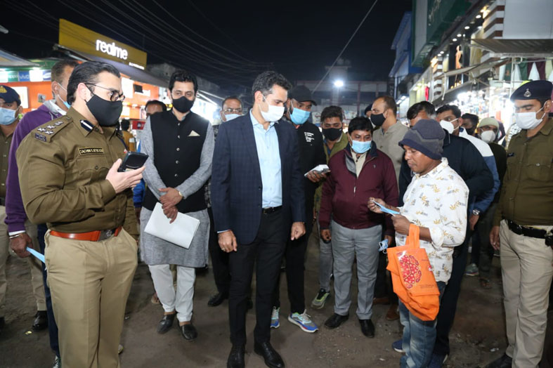 भोपाल। राजधानी में बड़ते कोरोना के आंकड़ो को देखते हुए बीती रात कलेक्टर अविनाश लवानिया और एडिशनल पुलिस कमिश्नर सचिन अतुलकर न्यू मार्केट में पैदल भृमण किया और लोगों को मास्क पहन्ने के लिए जागरुक किया। इस दौरान उन्हें कई लोग बिना मास्क पहने हुए दिखाई दिए। ऐसे लोगों के खिलाफ ऑन स्पॉट चालानी कार्रवाई की गई। समता चौक पर एसीपी को पूर्व विधायक सुरेंद्र नाथ सिंह अपने साथियों के साथ बैठे दिखे। वह बिना मास्क के थे। एसीपी ने उन्हें बिना मास्क देख टीम को तत्काल कार्रवाई के निर्देश दिए। हालांकि कलेक्टर ने उन्हें चालानी कार्रवाई से बचाया। हवाला दिया गया कि सुरेंद्र नाथ सिंह उस समय कुछ खा रहे थे, इसके लिए उन्होंने मास्क को उतारा था। जानकारी के अनुसार भोपाल में कोरोना पॉजिटिव का आंकड़ा डेढ़ सौ पार हो गया है। बावजूद लोग मास्क और सोशल डिस्टेंसिंग को लेकर लापरवाह है। बुधवार रात 8.30 बजे जब कलेक्टर अविनाश लवानिया और एसीपी सचिन अतुलकर न्यू मार्केट पहुंचे तो उन्हें बिना मास्क घूमने कई लोग दिखाई दिए।