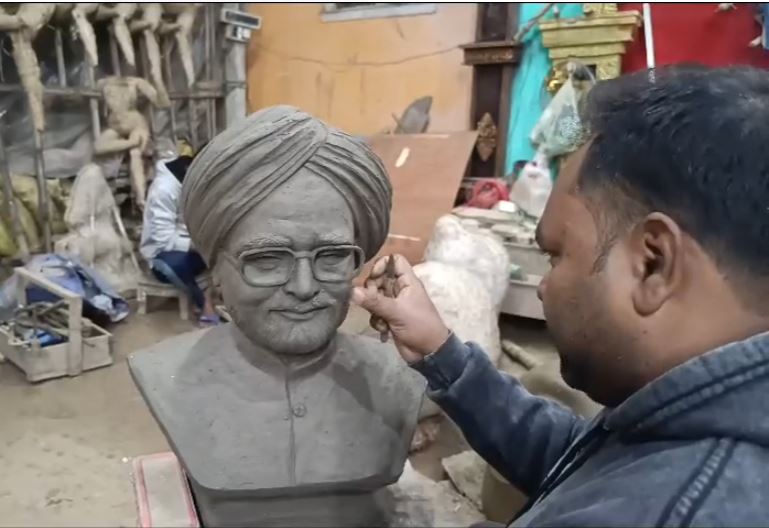 • महज चार घंटों में पोर्ट्रेट बना कर पूर्व प्रधानमंत्री मनमोहन सिंह को श्रद्धांजलि दी मूर्तिकार सूरज विश्वास ने