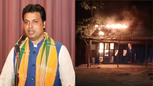 नई दिल्ली (new Delhi) । त्रिपुरा (Tripura) के पूर्व मुख्यमंत्रई बिप्लव देब (Biplav Deb) के पुस्तैनी घर पर हमला किया गया है। हमलावरों ने पूर्व सीएम के घर (house) में आग (fire) लगा दी और वहां खड़ी कार के शीशे भी तोड़ दिए हैं। घटना की जानकारी मिलते ही पुलिस और प्रशासन की आनन-फानन में मौके पर पहुंच गई है। पुलिस (police) घटना के चश्मदीदों से पूछताछ की जा रही है ताकि यह साफ हो सके कि आखिर हमला करने वालों में कौन-कौन से लोग शामिल थे।