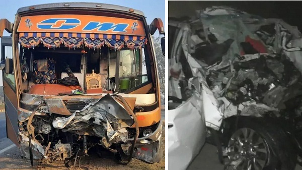 जानकारी के मुताबिक लग्जरी बस अहमदाबाद से वलसाड़ जा रही थी. बताया जाता है कि बस नेशनल हाईवे पर नवसारी जिले के वेसवां गांव के समीप ही पहुंची थी कि सामने से आ रही फॉर्च्यूनर कार से टक्कर हो गई. टक्कर इतनी भीषण थी कि फॉर्च्यूनर कार के परखच्चे उड़ गए और बस का भी अगला हिस्सा क्षतिग्रस्त हो गया है.