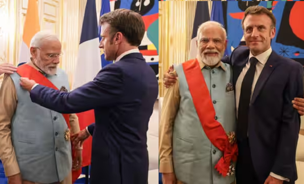 पेरिस (Peris)। फ्रांस (France) ने प्रधानमंत्री नरेंद्र मोदी (Prime Minister Narendra Modi) को देश के सर्वोच्च नागरिक और सैन्य सम्मान (Country’s Highest Civilian Military Honor ) ग्रैंड क्रॉस ऑफ द लीजन ऑफ ऑनर (Grand Cross of the Legion of Honor) से सम्मानित किया है। गुरुवार शाम पेरिस के एलीसी पैलेस (Elysee Palace) में फ्रांसीसी नेता द्वारा आयोजित एक रात्रिभोज के बाद राष्ट्रपति इमैनुएल मैक्रॉन (President Emmanuel Macron) द्वारा पीएम मोदी को यह सम्मान प्रदान किया गया। विदेश मंत्रालय ने कहा, ”पीएम मोदी ने इस अद्वितीय सम्मान के लिए भारत के लोगों की ओर से मैक्रॉन को धन्यवाद दिया।”
