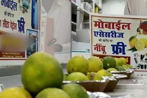 वाराणसी । नींबू और पेट्रोल (Lemons and Petrol) की बढ़ती कीमतों (Rising Prices) के बीच वाराणसी (Varanasi) के एक मोबाइल शॉप (Mobile Shop) के मालिक (Owner) ने मोबाइल फोन (Mobile Phone) और उनके एक्सेसरीज (Accessories) की खरीद पर (On Purchase) मुफ्त नींबू (Free Lemons) और एक लीटर पेट्रोल (1 Liter Petrol) की पेशकश की है (Is Offered) , जिसके तहत अगर इस दुकान से कोई मोबाइल या एक्सेसरीज खरीदता है, तो उसे उसके साथ नींबू और पेट्रोल मुफ्त दिया जाएगा।