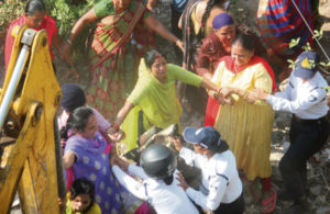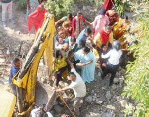 कार्रवाई के दौरान महिलाएं बहुत गुस्से में थीं और वे जेसीबी पर चढ़ गई और साथ ही कुछ महिलाएं जेसीबी के आगे लेट गई, जिन्हें कई वृद्धाएं भी शामिल थीं। महिला पुलिस और निगम टीम ने बमुश्किल उन्हें हटाकर पुलिस वाहनों में बैठाया।