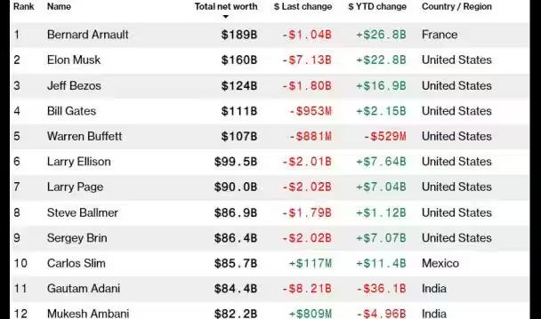 बता दें पिछले साल दुनिया के टॉप-10 अमीरों की लिस्ट में केवल मुकेश अंबानी और गौतम अडानी की दौलत बढ़ी थी। अडानी उस साल कमाई में भी नंबर वन रहे। इस साल मुकेश अंबानी ब्लूमबर्ग बिलेनियर इंडेक्स के टॉप-10 अरबपतियों की बाहर होकर 12वें स्थान पर आ गए हैं।
