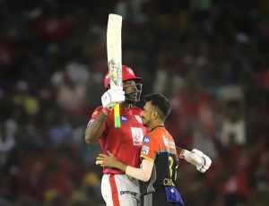 गेल ने अपनी पारी में 5 छक्के व एक चौके की मदद से 45 गेंदों पर 53 रन की पारी खेलते हुई टीम की जीत में बड़ी भूमिका निभाई. गेल ने अलग अंदाज में बल्लेबाजी की और 5 छक्के जड़े. अपनी इस पारी में लगाए 5 छक्कों के बाद क्रिस गेल के नाम ख़ास रिकॉर्ड दर्ज हो गया. आइपीएल इतिहास में अब क्रिस गेल ऐसे पहले बल्लेबाज हैं जिन्होंने 27वीं बार किसी पारी में 5 या उससे ज्यादा छक्के लगाए हैं.