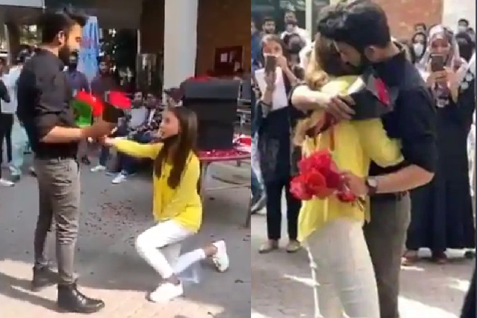 प्रेम प्रस्ताव का यह वीडियो ट्विटर पर खूब चला और पिछले बृहस्पतिवार को यह सोशल मीडिया की ‘टॉप सर्च’ में था. वायरल वीडियो में लड़की एक घुटने के बल जमीन पर बैठी और हाथों में गुलाब का गुलदस्ता लिये हुए लड़के को प्रेम प्रस्ताव देती है. लड़का गुलदस्ता लेता है और लड़की को गले लगाता है. आसपास मौजूद छात्र दोनों का हौसला बढ़ाते दिख रहे हैं. सोशल मीडिया पर मामला वायरल होने के बाद यूनिवर्सिटी ने ये फैसला लिया है.