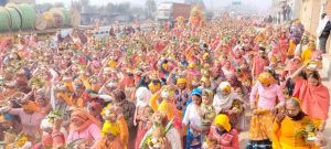 कलश यात्रा में भव्य रथ पर गिरिराज धरण की झांकी सजाई गई, वहीं कथावाचक छबीले छैल बिहारी महाराज वृंदावन भी रथ पर सवार थे। सोमनाथ चौराहा, सूर्य मंदिर, सरस डेयरी होते हुए कलश यात्रा गिरिराज धरण मंदिर पर पहुंची।