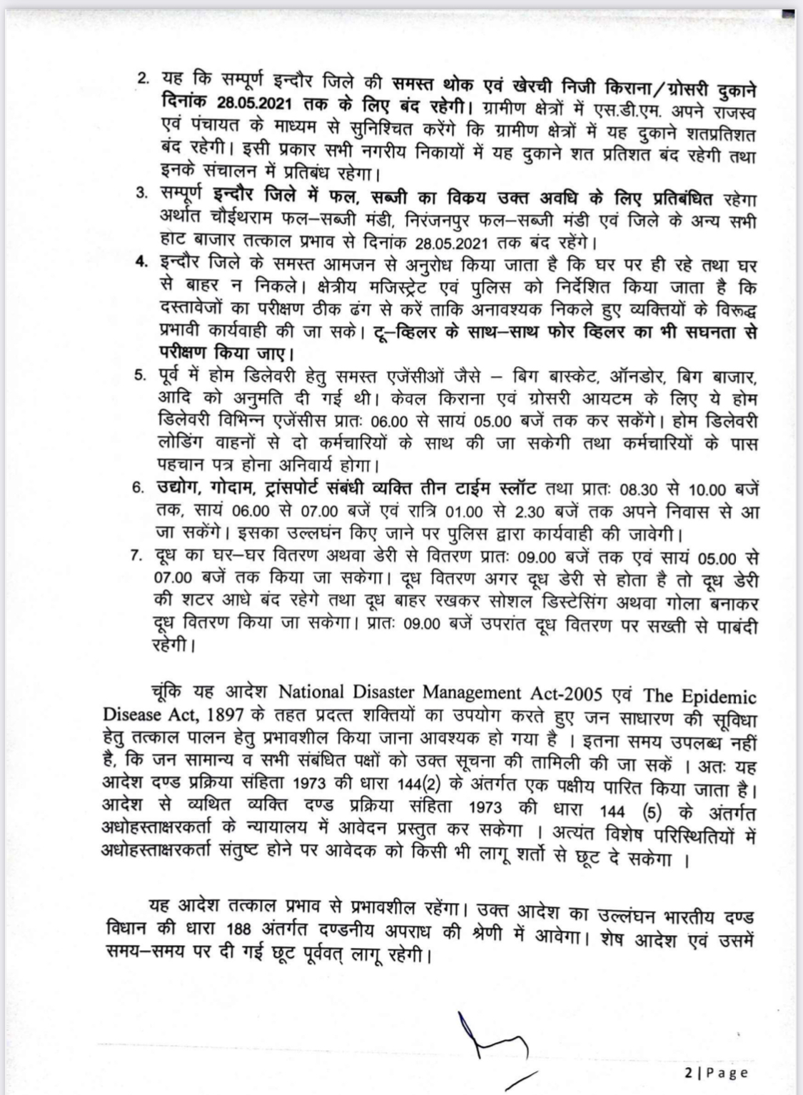 इंदौर। जिला प्रशासन ने अपने पुराने आदेश में संशोधन करते हुए आज रात एक नया आदेश जारी किया, जिसमें कल यानी 21 मई से लेकर 28 मई तक सभी किराना (Ration Shop) और ग्रॉसरी (Groceries Shop) की दुकानें बंद रहेंगी। इसके साथ-साथ फल और सब्जी भी नहीं बेची जाएगी। चोइथराम मंडी (Choithram Mandi) से भी फल और सब्जी का विक्रय नहीं होगा। कलेक्टर मनीष सिंह ने कहा कि इंदौर में कोरोना की संक्रमण पर काबू में आ रही है और इसे 30 तारीख तक काबू में करने के लिए कुछ करें निर्णय लेना पड़ रहे हैं हालांकि ऑनलाइन राशन सप्लाई करने वाली चैन चालू रहेगी।