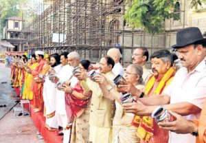 राजवाड़ा (Rajwada) पर लोक संस्कृति मंच के संयोजक और सांसद शंकर लालवानी (MP Shankar Lalwani) द्वारा हर साल ही तरह बड़ा आयोजन किया गया, जहां प्रभात गायन से शुरुआत की गई। कार्यक्रम में सद्गुरु अण्णा महाराज, लक्ष्मणदास महाराज, दादू महाराज के सान्निध्य में लोकसभा की पूर्व स्पीकर सुमित्रा महाजन, भाजपा महासचिव कैलाश विजयवर्गीय, मंत्री तुलसी सिलावट, विधायक मालिनी गौड़, वरिष्ठ भाजपा नेता कृष्णमुरारी मोघे, सुदर्शन गुप्ता के साथ अन्य लोगों ने सूर्य को अघ्र्य दिया। दूसरा बड़ा आयोजन बड़ा गणपति पर हुआ, जो पूर्व पार्षद टीनू जैन द्वारा किया गया था। यहां भी विजयवर्गीय के अलावा मंत्री सिलावट, मोघे, विधायक गौड़ ने केसरिया साफा पहनकर सूर्य को अघ्र्य दिया और बाद में एक-दूसरे को नए साल की शुभकामनाएं दीं।