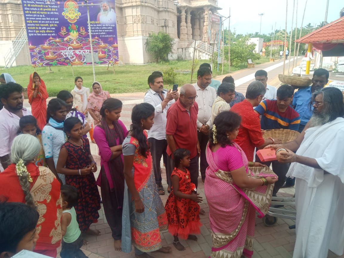 स्वामी विवेकानंदजी के उनके गुरु से जुड़े एक प्रसंग का उल्लेख करते हुए डॉ वसंतविजयजी ने कहा, संत किसी जाति-धर्म से बंधा नहीं होता। उन्होंने कहा कि वे धर्म सिद्धांतों से अवगत कराने की बजाय व्यक्ति को स्वयं उसी से मिलाते हैं। साधु का काम धन लेना नहीं, बल्कि धर्म देना है। सर्वधर्म दिवाकरश्रीजी ने कहा कि मनुष्य की पहली गुरु मां होती है, दूसरा गुरु शिक्षक होता है तथा जो मोक्ष मार्ग दिखाने का ज्ञान दे वह सद्गुरु है। उन्होंने कहा कि भाग्य के दरवाजे में प्रवेश की प्रार्थना कर शुभ संकल्प लेना चाहिए। संतों का प्रवेश श्रद्धालुओं को धर्म देने का है उसे पाने के लिए संकल्पित होकर प्रवेश करेंगे तो यही धर्म ही धर्मलक्ष्मी, धनलक्ष्मी, भाग्यलक्ष्मी और मोक्षलक्ष्मी बन जाता है। धर्म के मार्ग को उजाले का मार्ग बताते हुए राष्ट्रसंतश्रीजी ने कहा कि अनंत युगों तक समृद्धि की सुरक्षा के लिए धर्म का साथ जरूरी है। बड़ी संख्या में श्रद्धालु भक्तों को सन्तश्रीजी ने अपने कर कमलों से प्रसाद वितरित किया।