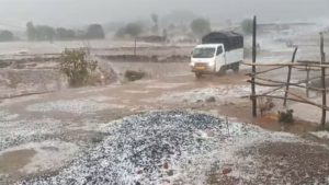 अनूपपुर। मध्यप्रदेश के अनूपपुर (Anuppur of Madhya Pradesh) के पुष्पराजगढ़ विकास खंड (Pushprajgarh Development Block) अंतर्गत मंगलवार दोपहर को तेज बारिश के साथ एक घंटे तक ओलावृष्टि होती रही। इससे पुष्पराजगढ़ विकास खंड के दर्जनों गांव इस ओलावृष्टि के कारण प्रभावित (affected due to hailstorm) हुए। ओलावृष्टि का आकार काफी बड़ा था, जिसके कारण सड़क पर गुजर रहे राहगीर सहित मवेशियों ने यहां वहां छुपकर खुद को ओलावृष्टि से बचाया।