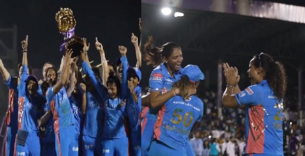 नई दिल्ली (New Delhi) । विमेंस प्रीमियर लीग (Women’s Premier League) में इतिहास रचते हुए रविवार रात मुंबई इंडियंस (Mumbai Indians) ने WPL की पहली ट्रॉफी अपने नाम की। खिताबी मुकाबले में उन्होंने दिल्ली कैपिटल्स (delhi capitals) को 7 विकेट से रौंदते हुए यह कारनामा किया। मुंबई की इस जीत का एक वीडियो सोशल मीडिया पर खूब वायरल हो रहा है जिसमें टीम के खिलाड़ी जश्न मनाते हुए नजर आ रहे हैं। यह वीडियो मुंबई की जीत के ठीक बाद का है। 20वें ओवर की तीसरी गेंद पर नेट साइवर-ब्रंट ने चौका लगाकर जैसे ही मुंबई इंडियंस को चैंपियन बनाया तो डग आउट में बैठीं सभी प्लेयर्स खुशी से झूम उठी। इस दौरान टीम की कप्तान हरमनप्रीत कौर (Harmanpreet Kaur) भी अपने इमोशन पर काबू नहीं कर पाईं। बता दें, इंटरनेशनल स्तर पर मेग लैनिंग ने हरमनप्रीत कौर को नॉक आउट में कई बार हराया है, मगर अब डब्ल्यूपीएल फाइनल में हराकर हरमन ने भी जरूर राहत की सांस ली होगी।