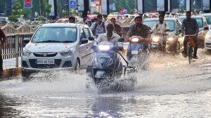 इंदौर। इंदौर (Indore) में बारिश (Heavy rain) का दौर लगातार तीसरे दिन भी जारी रहा। मंगलवार दोपहर पहले 50 किलोमीटर प्रति घंटे की रफ्तार से हवाएं चली। कई पेड़ों की टहनियां गिर गई। तीसरे दिन भी ज्यादातर क्षेत्रों की बिजली गुल हो गई। इसके बाद फिर तेज बिजलिया कड़की और बारिश का दौर शुरू हुआ, 20 मिनट तक तेज बारिश के बाद बूंदों की रफ्तार थोड़ी कम हुई, लेकिन तब तक शहर की कई सड़कों पर पानी भर गया था और ट्रैफिक थम गया था।