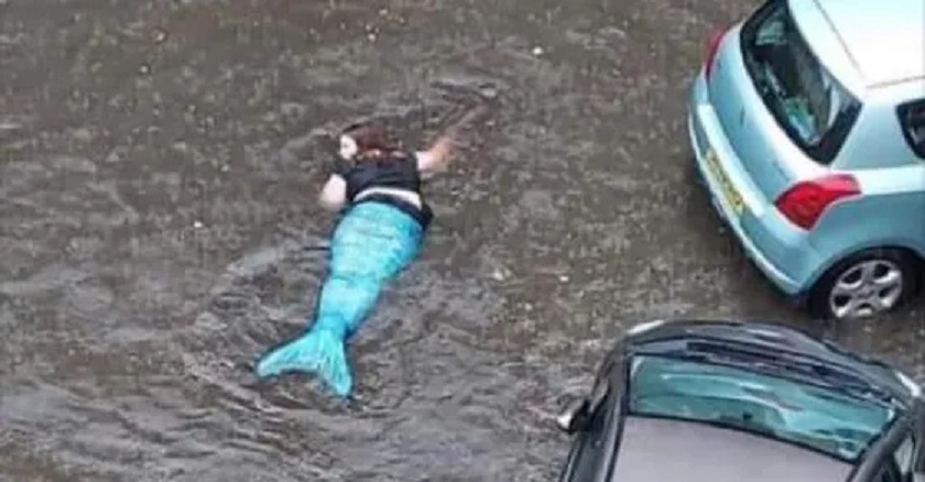 ग्लासगो। दुनिया के कई देशों में इन दिनों बारिश का मौसम चल रहा है. ऐसे में कई जगहों पर बहुत ज्यादा बारिश हो जाने से बाढ़ (Flash Flood) के हालात आम हो गए हैं. स्कॉटलैंड में स्थित ग्लासगो (Glasgow, Scotland) शहर इन दिनों जलमग्न है. पूरे शहर में पानी भरा हुआ है और लोग अपने घरों में कैद होने को मजबूर हैं. ऐसे में एक ‘जलपरी’ (Mermaid) ने अपने तैरने के लिए जुगाड़ ढूंढ लिया. इस ‘जलपरी’ की फोटो सोशल मीडिया (Social Media) पर खूब वायरल (Viral Photo) हो रही है. जानिए ‘जलपरी’ की अजब-गजब खबर (Weird News).