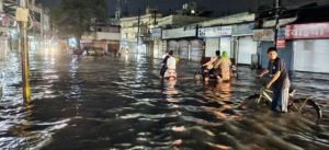 उज्जैन। कृषि उपज मंडी में कल लाखों रुपए का आलू प्याज खराब हो गया तथा बारिश के पानी में आलू प्याज की बोरियाँ डूब गईं। मंडी परिसर में बारिश के पानी की निकासी बंद पड़ी है। शहर में कल एक ही दिन में मौसम के दो रंग देखने को मिले। दिन में तेज धूप के कारण गर्मी अपने चरम पर नजर आई। वहीं शाम होते ही अचानक बादल घिरे और लगातार दो घंटे मूसलाधार बारिश हुई। इस दौरान ढाई इंच से ज्यादा पानी गिर गया। शहर में कई सड़कों पर दो से तीन फीट तक पानी जमा हो गया था। कृषि उपज मंडी में तो आलू-प्याज मंडी क्षेत्र में बने शेड के नीचे दो फीट ऊँचे ओटले भी डूब गए और इन पर रखे लहसुन प्याज की बारिश भीग गईं। दो घंटे की बारिश के दौरान पूरे शहर में ब्लैक आऊट जैसी स्थिति बन गई। वेधशाला स्थित मौसम केंद्र के मुताबिक कल दिन में अधिकतम तापमान 35.1 डिग्री सेल्सियस तक पहुँच गया था। दिनभर लोग गर्मी से बेहाल हो रहे थे। शाम के समय अचानक बादल छाने लगे थे और फिर 6 बजे के लगभग तेज गरज और बिजली की कड़क के साथ बारिश शुरू हो गई। यह बारिश धीरे-धीरे और तेज हो गई और करीब दो घंटे तक मूसलाधार पानी गिरा।
