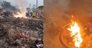 गोरखपुर: उत्तर प्रदेश (Uttar Pradesh) में सीएम सिटी गोरखपुर (Gorakhpur) में रविवार की देर शाम बड़ा हादसा हुआ है. यहां सोनबरसा बाजार में एक बाइक पर हाईटेंशन लाइन (high tension line) गिर गई. इस लाइन के संपर्क में आते ही धमाके के साथ बाइक में आग लग गई. इससे बाइक पर सवार एक युवक और दो बच्चों की मौके पर ही झुलसने से मौत हो गई है.