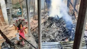डेस्क: बांग्लादेश में हिन्दू अल्पसंख्यों पर जुल्म का मामला सामने आया है. बांग्लादेश में एक हिन्दू मंदिर को निशाना बनाया गया. बांग्लादेश के शहर मागुरा में हिन्दू मंदिर में तोड़-फोड़ की गई. मंदिर को जला दिया गया. जिसके बाद लोगों में दशहत फैल गई. मंदिर के साथ-साथ हिन्दूओं के कुछ घरों में भी आग लगा दी गई, जिसके बाद मामले की जानकारी मिलते ही पुलिस घटनास्थल पर पहुंची और हालात पर काबू पाया गया. हालांकि इस घटना के बाद बांग्लादेश में रह रहे हिन्दू डरे हुए हैं.