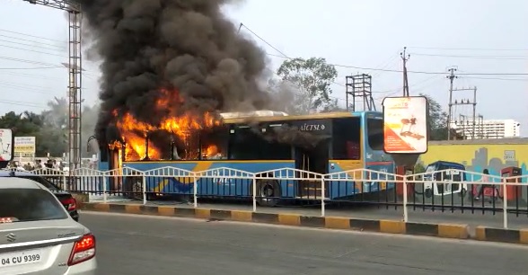 • 25 यात्रियों से भरी आई-बस में सत्य साईं चौराहे पर लगी आग