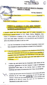 उल्लेखनीय है कि नगर निगम द्वारा शहर में सडक़ किनारे होर्डिंग्स, यूनिपोल लगाने के लिए सितंबर 2019 में टेडर जारी किए गए थे। इस मामले में कई अनियमितताएं सामने आ चुकी हंै और ‘अग्निबाण’ इस पूरे मामले को घोटाले के रूप में सामने ला चुका है। होर्डिंग लगाने के लिए जिन कंपनियों को ठेका दिया गया है वे शहर के बाहरी क्षेत्रों की अनुमति पर मुख्य शहर में होर्डिंग लगा रही हैं। साथ ही निगम के अधिकारियों ने कंपनियों को फायदा पहुंचाने के लिए निगम को 22 करोड़ से ज्यादा का चूना भी लगाया है। ‘अग्निबाण’ की इसी पड़ताल में आज आपको बता रहे हैं कि कैसे नगर निगम, जो कोर्ट में सडक़ किनारे होर्डिंग लगाने का विरोध कर चुका है, वो खुद ही कोर्ट के आदेशों की अवहेलना करते हुए यह टेंडर जारी करने के साथ ही पूरे शहर में कंपनियों के माध्यम से होर्डिंग लगवा भी रहा है। मामले की शुरुआत होती है 2016 से। नगर निगम प्रदेश में लागू होने वाले नए विज्ञापनों को देखते हुए शहर से होर्डिंग्स हटाने का अभियान शुरू करता है। इसके खिलाफ इंदौर होर्डिंग ट्रेडिंग एसोसिएशन सहित अन्य इंदौर हाईकोर्ट में दो अलग-अलग रीट याचिका लगाते हैं, जिनका क्रमांक 1318/2016 और 1320/2016 है। इसमें राज्य शासन, नगर निगम, निगमायुक्त और एमआईसी को पार्टी बनाया जाता है। मामले में सुनवाई के बाद कोर्ट 2 मार्च 2016 को एसोसिएशन की याचिका खारिज कर निगम के पक्ष में फैसला देते हुए सडक़ किनारे लगे होर्डिंग हटाए जाने का फैसला देती है।