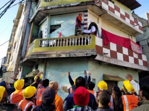 मशक्कत के बाद महिलाओं को घर से निकाला, बच्चों ने किया रोना शुरू