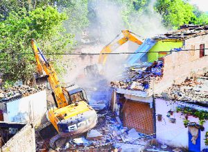 इन्दौर। गुंडों के खिलाफ कार्रवाई का अभियान आज भी जारी रहा और आज सुबह निगम, प्रशासन, पुलिस की टीम औद्योगिक क्षेत्र पालदा के हिम्मत नगर में पहुंची। वहां 14 से ज्यादा अपराधों वाले गुंडे बल्लू उर्फ बलराम माली के 40 बाय 50 में बने मकान को ढहाने की कार्रवाई दो पोकलेन मशीनों के माध्यम से शुरू की गई। कार्रवाई के पहले गुंडे की बेटियों ने निगम और पुलिस अफसरों के सामने मकान न तोडऩे की गुहार लगाई और कहा कि यह मकान उनकी मां के नाम पर है। पिता से अब उनका कोई वास्ता नहीं है। मकान तोडऩे पर वह बेघर हो जाएंगे, लेकिन अफसरों ने उनकी नहीं सुनी और मकान ढहाना शुरू कर दिया। आज इस अभियान के तहत पालदा क्षेत्र में ही कार्रवाई होना है। बाकी कल स्थानों पर गुंडों के आशियाने ढहाए जाएंगे।