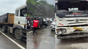 मुंबई: शनिवार को मुंबई-पुणे (Mumbai-Pune) एक्सप्रेसवे (Expressway) पर उस वक्त अफरा-तफरी मच गई जब खंडाला घाट (Khandala Ghat) के पास एक कंटेनर (Container) के ब्रेक फेल हो गए और उसने सामने जा रही गाड़ियों को जोरदार टक्कर मार दी. हादसा इतना भीषण था कि 18 से 20 गाड़ियां एक-दूसरे से भिड़ गईं, जिनमें से कई पूरी तरह से चकनाचूर हो गईं. यह हादसा दत्ता फूड मॉल के सामने हुआ जो इस रूट का एक व्यस्त और प्रमुख पॉइंट है.
