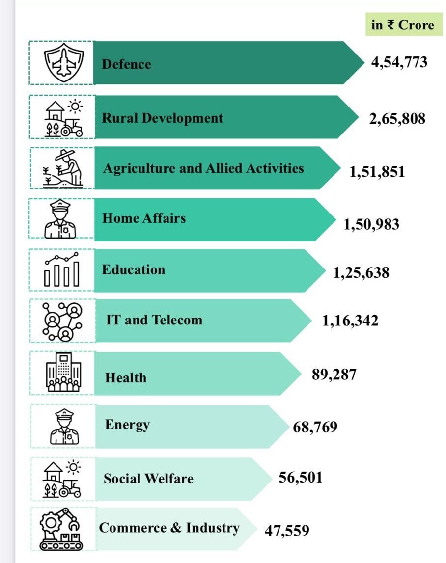 शिवराज सिंह चौहान ने कहा कि बजट में दलहन तथा तिलहन के लिए आत्मनिर्भरता हेतु रोडमैप तैयार किया गया है. 400 जिलों में फसलों का डिजिटल सर्वेक्षण के साथ ही 5 राज्यों में जन समर्थ आधारित किसान क्रेडिट कार्ड जारी किए जाएंगे. इसके अलावा FPO, सहकारी समितियों और स्टार्ट-अप्स को बढ़ावा देंगे. इसके बाद नंबर आता है गृह मंत्रालय का. केंद्रीय बजट में अमित शाह के मंत्रालय होम मिनिस्ट्री को 1 लाख 50 हजार 983 करोड़ रुपये दिया गया है. इस बजट 2024 में शिक्षा मंत्रालय को 1 लाख 25 हजार 638 करोड़ रुपये दिये गये हैं.