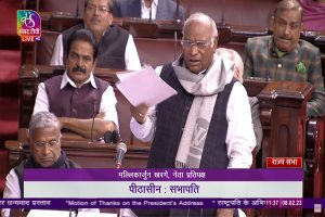 राष्ट्रपति के अभिभाषण पर विपक्ष की ओर से चर्चा शुरू करते हुए कांग्रेस अध्यक्ष मलिकार्जुन खड़गे ने कहा कि इस उद्योगपति को सरकार से प्रोत्साहन व समर्थन मिला है, सरकारी बैंकों से उसे काफी रकम मिली है। खड़गे ने कहा गुजरात में 31 पैसे का कर्ज बकाया होने पर एक किसान को ‘नो ऑब्जेक्शन’ सर्टिफिकेट नहीं मिला, लेकिन उद्योगपतियों के हजारों करोड़ रुपए माफ किए गए। एयरपोर्ट, कोल, रोड, सीमेंट एक व्यक्ति को मिल रहा है और उसको यह खरीदने के लिए पैसा भी सरकारी बैंकों से उपलब्ध हो रहा है।
