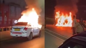 समय पर दिखाई गई समझदारी की वजह से कार सवार लोगों की जान बच गई लेकिन कार जलकर खाक हो गई। यात्रियों में किसी के घायल होने की बात सामने नहीं आई है। घटना बीती रात की है, जिसका वीडियो आज वायरल हो रहा है।