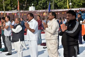उज्जैन। स्वामी विवेकानंद जयंती के अवसर पर आज सुबह महाकालपुरम सरस्वती शिशु मंदिर परिसर पर सामूहिक सूर्य नमस्कार कार्यक्रम का आयोजन किया गया। इसमें जनप्रतिनिधि और अधिकारी तथा सैकड़ों स्कूली छात्र-छात्राओं के साथ मिलकर सूर्य नमस्कार किया।