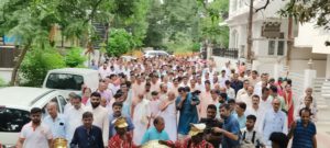 इन्दौर। आचार्यश्री विजय कुलबोधि सूरीश्वर मसा का भव्य चातुर्मासिक मंगल प्रवेश जुलूस आज सुबह गाजे-बाजे के साथ रतलाम कोठी स्थानक से कंचनबाग तक निकाला गया। जुलूस में आचार्यश्री के साथ 10 साधु-साध्वी भगवंत भी शामिल रहे। सैकड़ों की संख्या में शामिल समाजजनों ने मंगल जुलूस में शामिल होकर आचार्यश्री का आशीर्वाद लिया।