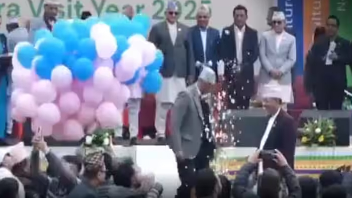 काठमांडू: नेपाल की राजधानी काठमांडू से एक बड़ी खबर सामने आई है, पोखरा पर्यटन वर्ष के उद्घाटन समारोह के दौरान शनिवार (15 फरवरी,2025) को एक हाइड्रोजन गैस से भरा गुब्बारा फट गया, जिससे नेपाल के उप प्रधानमंत्री बिष्णु पौडेल और पोखरा महानगर के मेयर धनराज आचार्य झुलस गए. घटना का वीडियो सोशल मीडिया पर तेजी से वायरल हो रहा है.